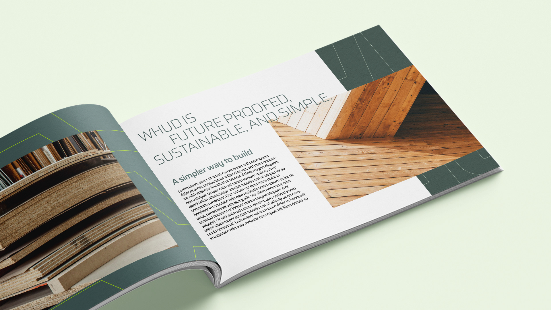 Visual identity for a construction start-up, whud. They utilise innovative software to maximise the efficiency of timber frame builds, reducing on-site material, labour, and energy.